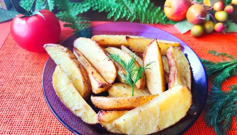 Запеченные картофельные дольки в кожуре – простой рецепт
