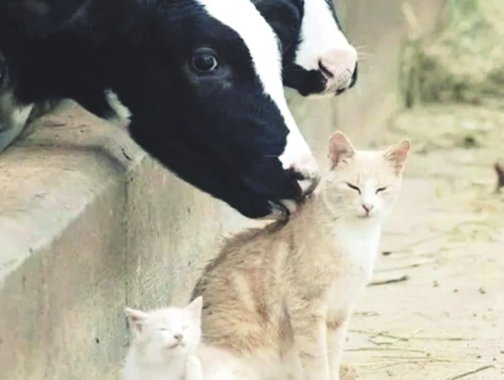 Люди издавна содержали скот вместе с домашними животными (кошками и собаками), создавая условия для формирования дружеских связей между разными видами.