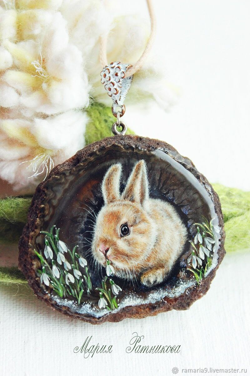 Кулон "Кролик в подснежниках".