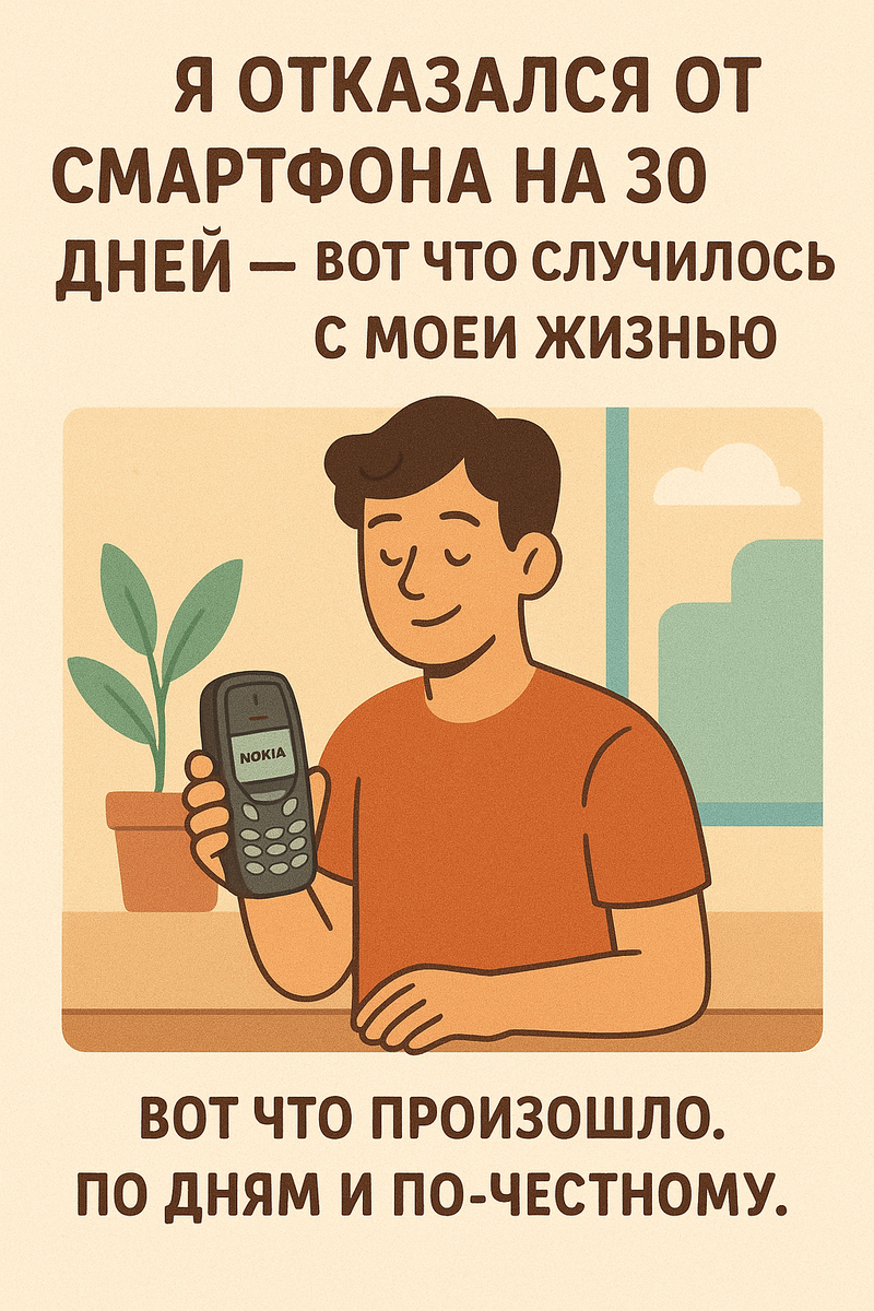 Телефон был приросший к руке. Я даже не мог поесть без видео на фоне. В один момент я просто выключил свой iPhone 14 Pro Max, достал из ящика старую Nokia 3310 (да, ту самую, с «змейкой») и сказал себе: 30 дней без смартфона. Только звонки и смс. Никаких мессенджеров, карт, ютуба, инстаграма и даже будильника. Вот что произошло. По дням и по-честному. День 2: я 47 раз за день брал Nokia в руки и понимал, что делать дальше нечего. Руки сами тянулись к пустому месту в кармане.