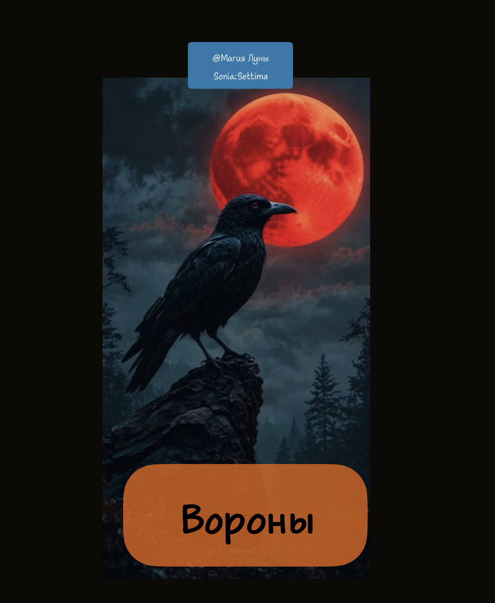 Вороны — это особая каста — одна из самых загадочных и многогранных птиц Это мудрый, хитрый, тёмный, очень сильный тотем . В разных традициях ворон может выступать как вестник, проводник, божество или трикстер. Образ сочетает в себе противоречивые черты. С одной стороны, он ассоциируется с мудростью, знанием и пророчеством, с другой — со смертью, магией и тёмными силами. В христианской традиции ворон может символизировать дьявола и разложение, но также упоминается как птица, кормившая пророка Илию в пустыне 🖤 Общий образ ворона в мифах Ворон связан с: мудростью и тайным знанием; судьбой и предзнаменованиями; миром духов и богов; магией и трансформацией; защитой и проводничеством. Это птица, которая видит больше, чем человек, — и всегда что-то знает. 🌌 Скандинавская мифология Самая известная пара — Хугин (Мысль) и Мунин (Память), вороны бога Одина. Они каждый день облетают девять миров, приносят ему тайные новости — практически божественные разведчики и мудрые советчики. служат