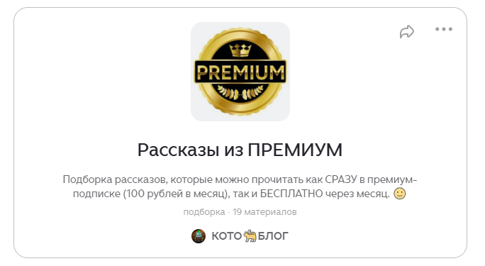 Я создам тогда специальную рубрику, куда буду ставить и то, что в "премиум" (закрытом) и рассказы, которые уже были опубликованы в общем доступе для всех и без подписки. 🙂 Вот это раздел. Там подборка и тех рассказов, которые уже опубликованы в премиум-подписке (100 рублей в месяц) и те же рассказы, которые спустя месяц уже были опубликованные бесплатно в общем доступе. 🙂