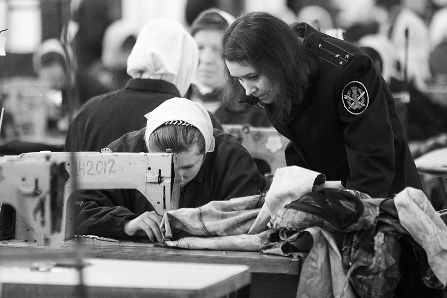 Самое распространённое направление в женских колониях — швейное производство. В цехах стоят ряды машин, за которыми по сменам работают осуждённые. Здесь шьют всё: от простых наволочек и простыней до форменной одежды для разных ведомств. У каждой женщины — своя операция: одна постоянно прострачивает боковые швы, другая делает воротники, третья работает с манжетами.