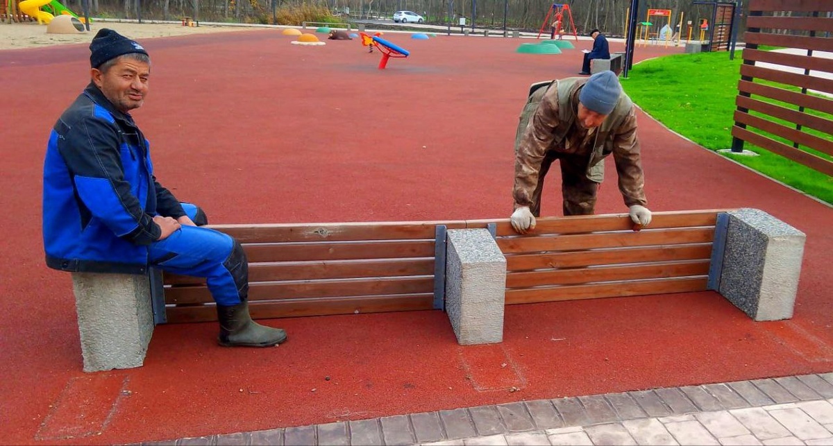 Сотрудники учреждения занимаются ремонтом и установкой малых архитектурных форм в парковой зоне.