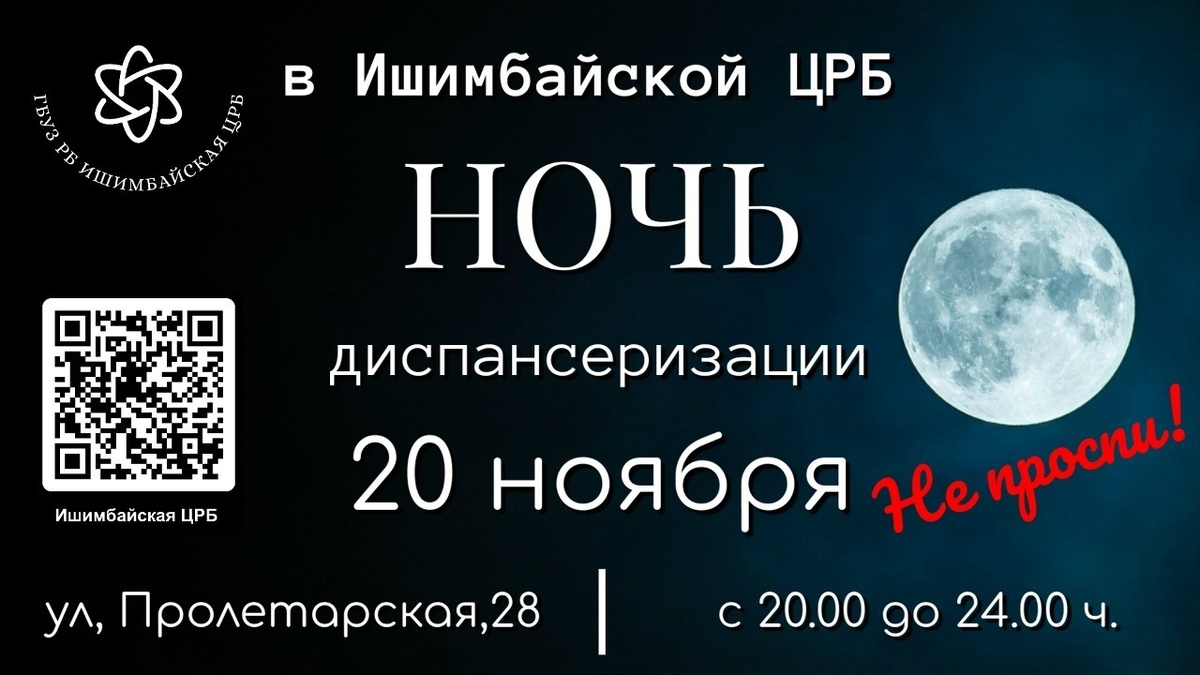 Отличный шанс пройти обследования без очередей и спешки! Ждём вас с 20:00 до 00:00 по адресу: ул. Пролетарская, 28, каб. 120. Гостей ждут основные обследования, консультации специалистов, мастер-классы, ЛФК и лёгкая активность на тренажёрах. Будет работать стоматолог. После анализов — горячий чай, сладости, фото-зона и беспроигрышная лотерея с подарками! Тем, кто придёт с другом, — дополнительный сюрприз. Важно: кровь сдаём натощак, минимум за 3 часа до анализа. Приходите за здоровьем и хорошим настроением!