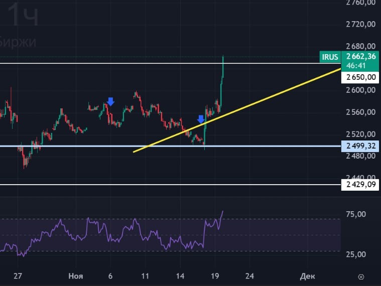🟢 Идеальная резинка идет. Важно закрепиться сегодня уже на 2650.