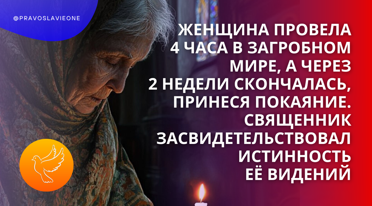 – Отцы и братья, позвольте поведать, что я пережила! Неделю назад, в канун праздника Пресвятой Богородицы, я провела четыре часа в загробном мире! До сих пор не могу прийти в себя. Не знаю, во сне ли, наяву, в теле или вне его — но это было.