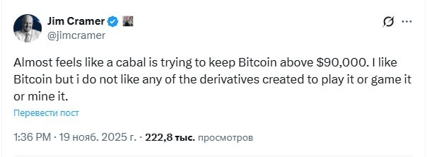 Такое чувство, что тут не обошлось без сговора, чтобы не дать биткоину упасть ниже 90 тысяч. Я за биткоин, но против всех этих деривативов, придуманных для спекуляций, игр с системой или майнинга.
