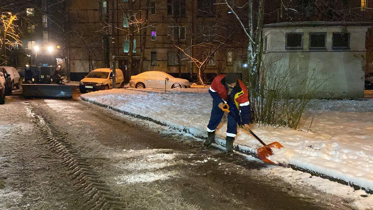 В Кировском районе Петербурга чистят дворы и улицы от снега