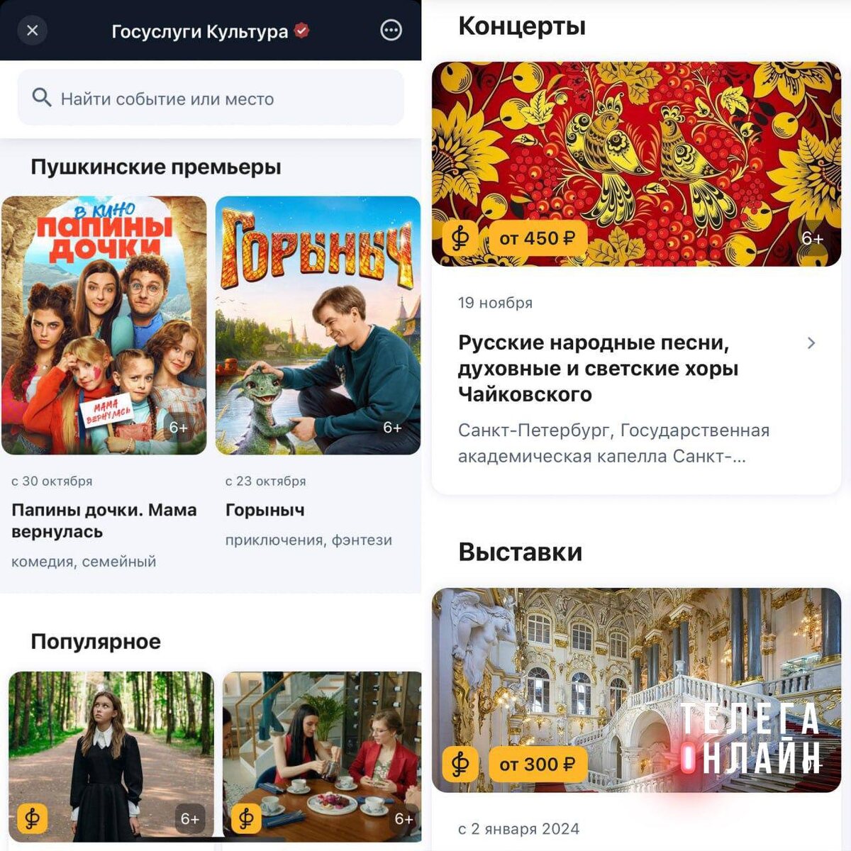 «Вот билет на балет…» (с) Минкультуры и Минцифры запустили в МАХ мини-приложение «Госуслуги Культура», через которое можно покупать билеты в кино, музеи и на концерты. Также привязана оплата по «Пушкинской карте». Это лучше, чем тапать хомяка. 🚲 Подпишись на Телега Online