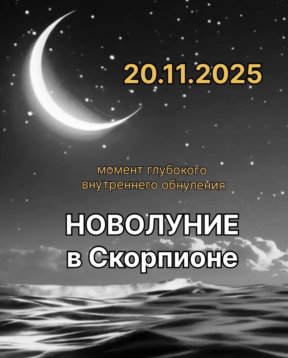 20 ноября 2025 в 7:47 по Цюриху Новолуние в 29 градусе Скорпиона Это Новолуние - момент глубокого внутреннего обнуления (произойдёт в последних «критических» градусах Скорпиона), когда многие очень ясно почувствуют: «Так, как есть/было больше не может продолжаться». Новолуние в Скорпионе поднимет реальные причины напряжения и толкнёт в трансформации. Задайте себе следующие ❓: • почему вы держитесь за то, что давно перестало давать энергию? • где вы продолжаете тянуть обязательства “на автомате”? • что внутри вас просит освободить место для нового, но вы всё ещё сопротивляетесь? Это честный разговор с самими собой, от которого невозможно уйти. На что обратит внимание данное Новолуние • на Глубину. Вы начнёте видеть вещи не так, как “принято”, а так, как оно есть на самом деле. • на Финансовую и эмоциональную трезвость. Всплывут темы денег, долгов, вложений, зависимости в отношениях (эмоциональных, финанcoвых и других). • на Необходимость завершить старый цикл. Новолуние стоит