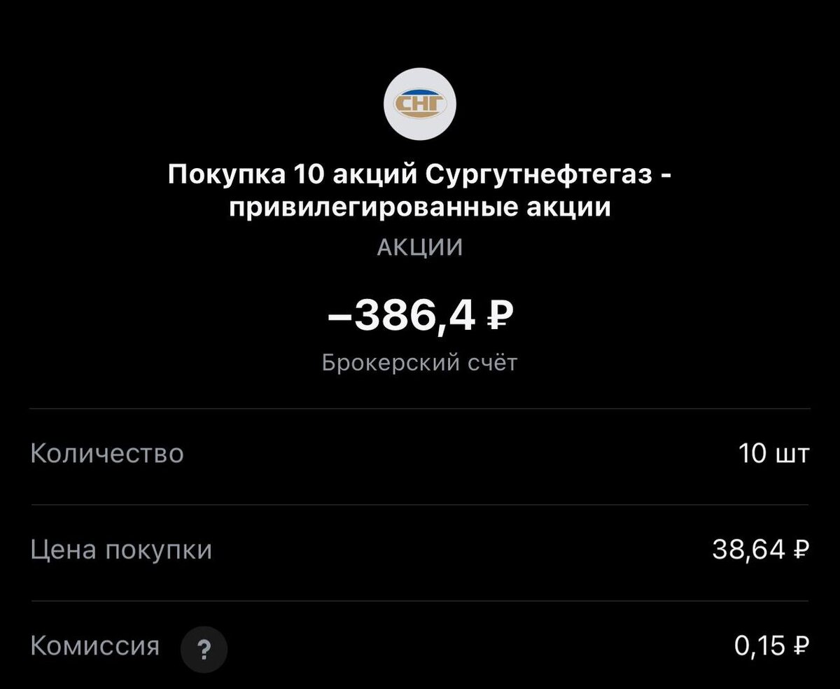 Всем привет! Покупка на сегодня #317, вчера пропустили. Статистика портфеля на стороннем сервисе, можно посмотреть по "ссылке" Напомню это челлендж с коллегами, каждый рабочий день пополняем брокерский счет на 250 рублей и инвестируем. Если возникли вопросы или есть не понимание, что делать. Задавайте «тут» Покупка #317 🟢 «Сургутнефтегаз-преф» 38.64 rub #SNGSP 1 лот #каждыйсможет #челенджсколлегами ✈️ Стас Мироненко 📹Youtube | 📹Rutube