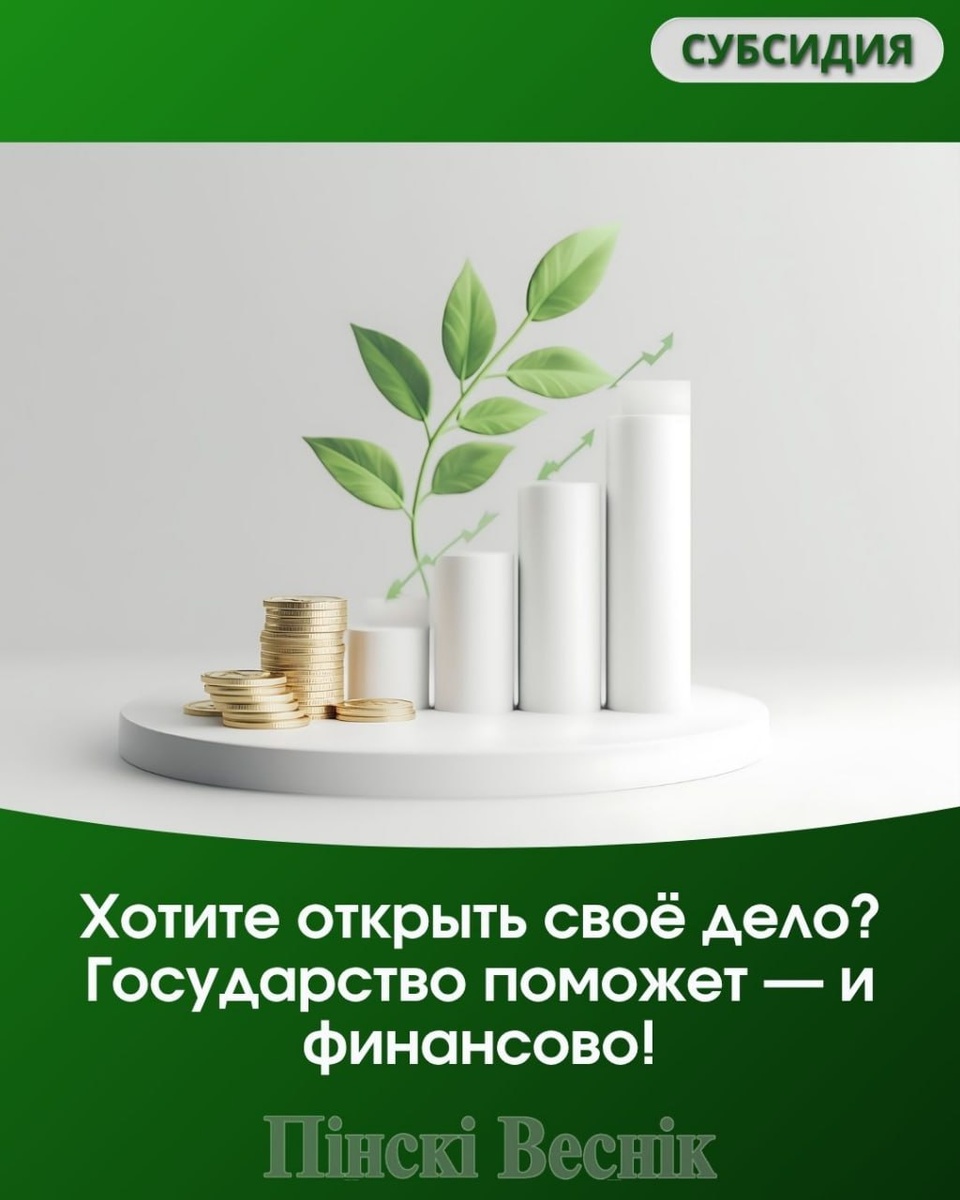 🔄Хотите открыть своё дело? Государство поможет — и финансово! ➡️Государственная служба занятости предоставляет безработным помощь в обучении, составлении бизнес-плана и безвозмездную субсидию на организацию ИП, ремесленной или профессиональной деятельности, а также услуг в агроэкотуризме. ⏩Право на помощь имеют зарегистрированные безработные, не сумевшие найти подходящую работу. Максимальная сумма — до 11-кратного прожиточного минимума (до 20-кратного — при внедрении разработок и изобретений). ➡️Субсидия тратится целево в течение 3 месяцев; предприниматель обязан вести деятельность минимум 9 месяцев в течение года. Отказ — при возобновлении ИП менее года назад или при ранее полученной субсидии. ✔️В Пинске за янв–окт финансовую поддержку получили 10 человек: автосервис, общепит, розничная торговля, сантехника, бухгалтерия, строительство, косметические услуги. Подробности и запись: управление по труду, занятости и соцзащите Пинска, ул. Куликова, 29, каб. 4, 5. Тел.: 63-85-82, 63-84-