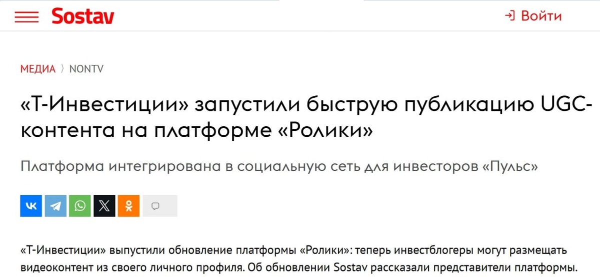 Т-Инвестиции выкатили апдейт своей платформы «Ролики». Блогеры-инвесторы теперь могут публиковать контент прямо из личного профиля. Что это меняет для обычного пользователя: • Контента про финансы и инвестиции станет в разы больше. • Вместо танцев и котиков в Роликах — инвестиционные идеи, разборы и лайфхаки от топовых трейдеров, а также новости компаний. • Можно учиться инвестировать, просто листая ленту в приложении. Найден способ УМНОЙ лени: скроллим ленту и находим идеи, как разбогатеть. Бесплатный GPT-bot ⚡️НейроМастер⚡️