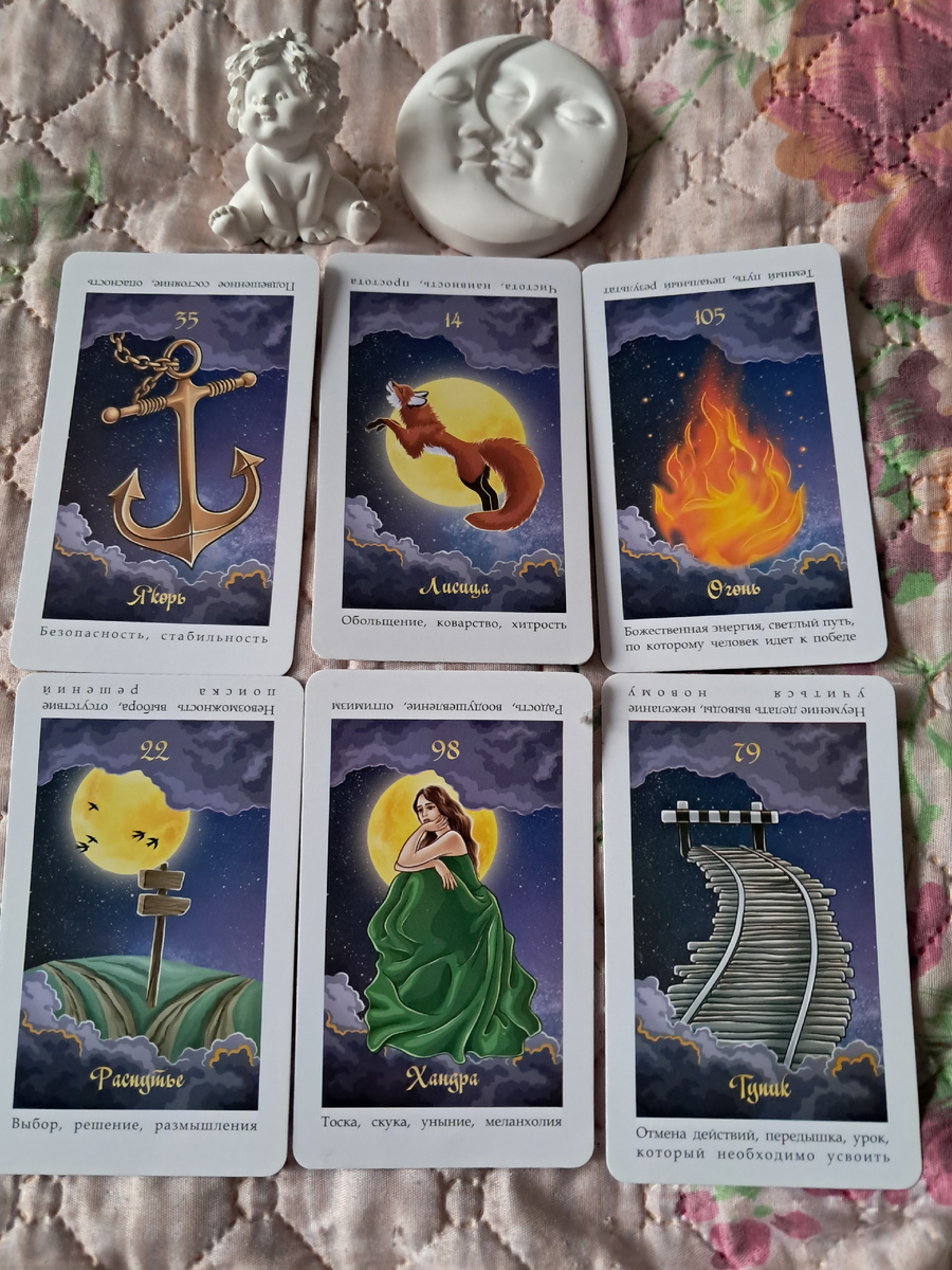 Здравствуйте! Это очень мощный и многогранный расклад, который говорит о действительно кардинальных переменах. Название "Полнолуние" идеально его отражает — это момент пика, высшей точки, когда всё скрытое становится явным, и после которого неизбежно начинается новый цикл. Давайте разберем ваши карты по порядку, собрав их в единую историю. Толкование карт в контексте "Полнолуния" 1. Якорь (Стабильность, опора, безопасность) Эта карта указывает на то,что является вашей основой в жизни сейчас. Это ваша "зона комфорта", то, что держит вас на месте — будь то работа, отношения, привычный образ жизни или внутренние убеждения. "Полнолуние" освещает этот "якорь", и вы ясно видите, что он для вас значит. 2. Лиса (Хитрость, обман, иллюзии, необходимость быть гибким) А вот и ключевой посыл!"Лиса" говорит о том, что ваша текущая стабильность ("Якорь") может быть или полностью построена на иллюзиях. Возможно, вы сами себя обманываете, не замечая очевидных проблем. Или же кто-то из вашего окружения
