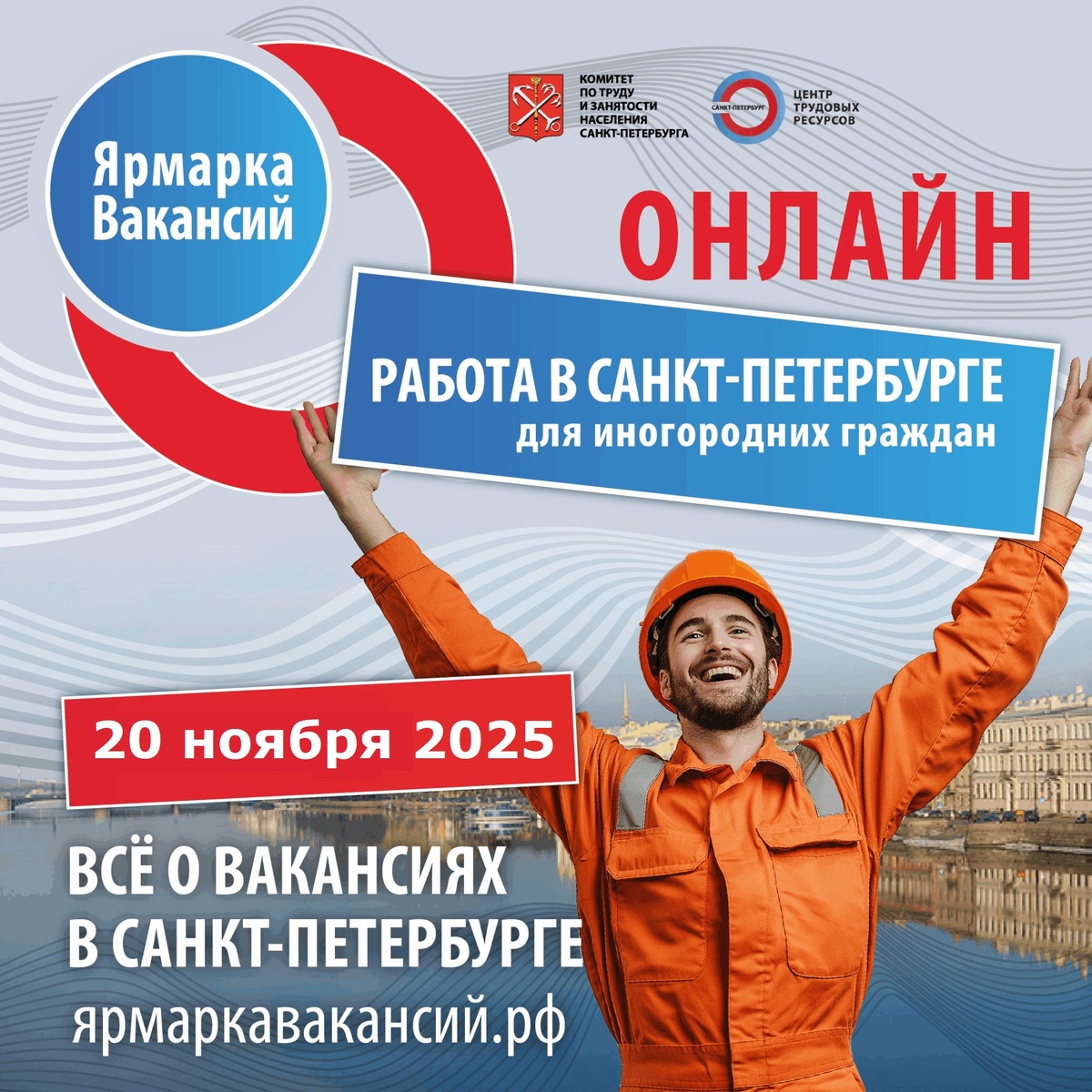 🏢 Ярмарка вакансий от Санкт-Петербурга для жителей Краснодарского края Санкт-Петербургское государственное автономное учреждение «Центр трудовых ресурсов» приглашает на заключительное, десятое мероприятие Ярмарки вакансий! Дата и время: 20 ноября 2025 года, 11:00 по московскому времени. Формат: видеоконференция. В мероприятии примут участие ведущие работодатели Санкт-Петербурга. Это отличный шанс найти интересную работу в одной из культурных столиц России, не выезжая из Краснодарского края. Важно: Ссылка для подключения будет направлена всем зарегистрированным участникам за 2 часа до начала эфира. 📌 Как принять участие? Вся подробная информация о порядке участия размещена на нашем сайте: 👉 https://spbgauctr.ru/yarmarca_online Не упустите свой шанс найти работу мечты! #ЯрмаркаВакансий #РаботаВПитере #КраснодарскийКрай #ЦентрТрудовыхРесурсов #Вакансии #РаботаОнлайн #SPb