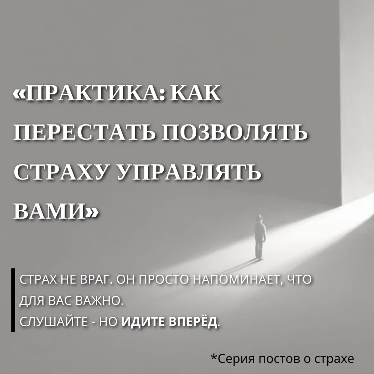 Практика: как перестать позволять страху управлять вами? Мы редко осознаём, насколько сильно страх формирует наши решения. Он не всегда говорит громко - чаще это внутренний шёпот: «А вдруг не получится?» «Ты не готов» «Лучше подожди ещё немного». 🖋Американский психолог Сьюзан Джефферс, автор книги «Почувствуй страх и действуй вопреки», писала: «Страх не исчезает, пока вы ждёте уверенности. Он уходит, когда вы начинаете действовать». Сегодня мы предлагаем простое, но глубокое упражнение. ➖Оно основано на методах Acceptance and Commitment Therapy (С. Хэйз) и элементах когнитивно-поведенческой терапии (А. Бек). Задача - увидеть, где страх управляет вашими решениями, и вернуть себе внутреннюю свободу. 👆Упражнение «Разговор со страхом» 1️⃣ Заметь, где ты откладываешь. Возьми лист и запиши три дела, которые ты давно хочешь сделать, но всё время переносишь. Рядом напиши честно - почему не делаешь? 2️⃣ Найди голос страха. Под каждой причиной напиши, что ты чувствуешь, когда думаешь о