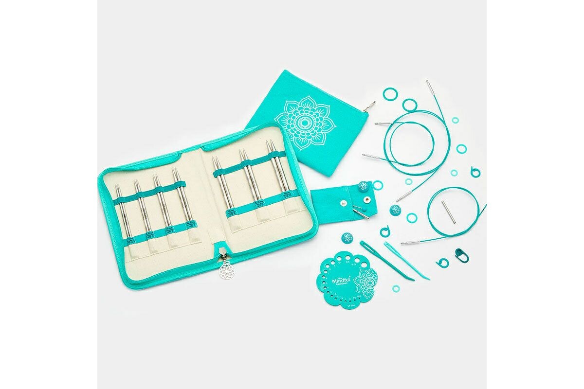 в наборе: футляр, спицы съемные "Mindful" (3мм, 3,5мм, 4мм, 4,5мм, 5мм, 5,5мм, 6мм), длина 13см, тросик поворотный (60см, 80см, 100см