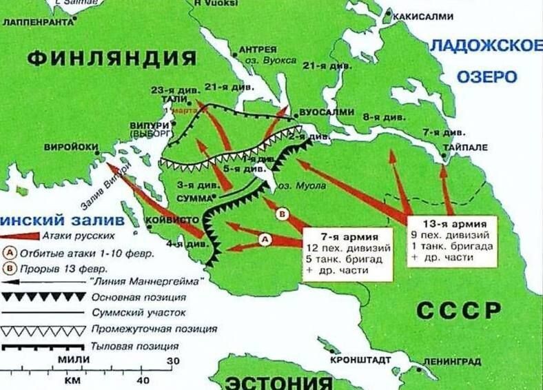 Тайпале: в районе Тайпале советским войскам удалось закрепиться на восточном берегу реки Вуокса и начать постепенное продвижение к линии Маннергейма. Здесь шли ожесточенные бои, в которых обе стороны несли тяжелые потери. Несмотря на значительное превосходство в живой силе и технике, советским войскам не удавалось прорвать финскую оборону.