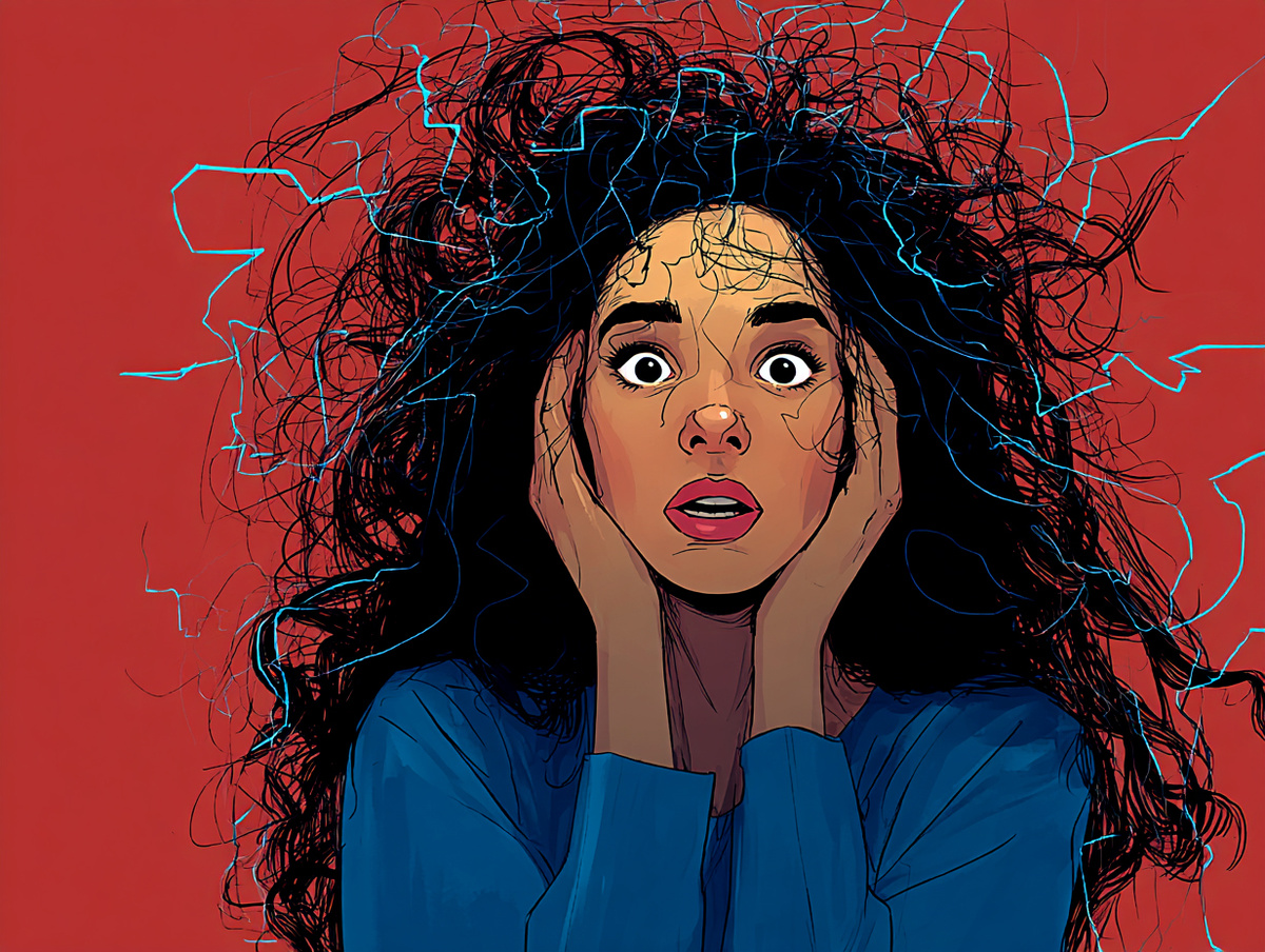 - Электрические разряды. По мере накопления одинакового статического заряда на волосах, между ними и окружающими предметами формируется разница потенциалов. И когда мы касаемся металла, ткани или даже кожи рук, заряд стремится быстро выровняться: происходит мгновенный переход электронов с волос на объект с меньшим зарядом. Этот резкий «скачок» и ощущается как легкий удар током или щелчок.