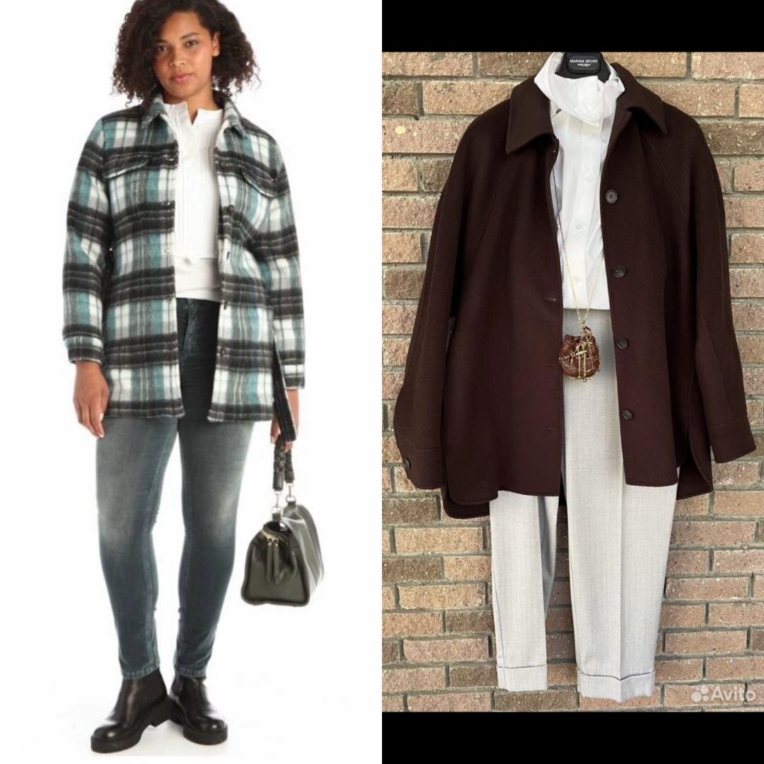 В целом, конечно, на фоне коричневой рубашки, клетчатая рубашка как-то кажется немножко так поинтереснее, повеселее. И производитель ее стилизует с узкими джинсами, что в принципе, неплохо, так как это создает контраст объемов. Ну и вообще, такая вот рубашка клетчатая, джинса – это тема вестерна, которая всегда актуальна и, при этом, очень освежающая. Но в то же время, на мой взгляд, вот эта пестрота какая-то, излишняя ляпистость, и вот те аспекты, про которые я говорила раньше, могут добавить лишнего объёма. И честно, вот я бы её скорее не рекомендовала, чем рекомендовала. И особенно в ситуации, когда не хватает роста. Здесь в этой рубашке у меня именно претензии вот к этим широким горизонтальным полосам, которые очень расширяют. Вот сделали бы их вертикальными, смотрелось бы совсем по-другому, было бы здорово. Или бы рукава сделали из другой ткани, чтобы эта рубашка не стремилась к квадрату, а формировала четкий, вытянутый вертикальный прямоугольник. Ну, и что бы хотелось еще сказ