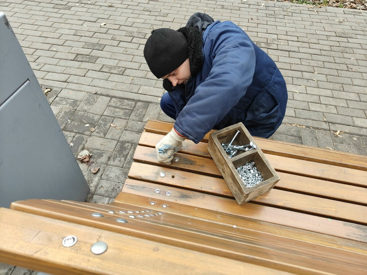 Ежедневно специалисты Дирекции благоустройства и озеленения продолжают ремонтировать скамейки
