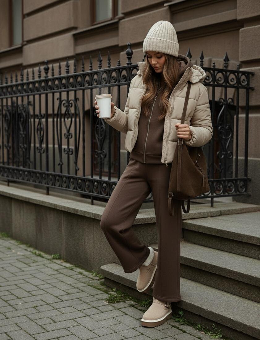 Тот, в котором хочется гулять по морозным улицам, греть руки горячим кофе и чувствовать себя красиво и уверенно🤍 Мы уже начинаем готовиться к зиме - и у нас появились очень тёплые, мягкие костюмы, в которых так легко создавать атмосферные образы. Мы добавили глубокие, согревающие оттенки: тёплый коричневый и нежный бежевый. Эти цвета сейчас максимально актуальны, и в них каждый образ смотрится особенно уютно, по-зимнему гармонично. Ссылочки товаров на wb: Спортивный костюм Зимняя куртка Угги Шапка Сумка
