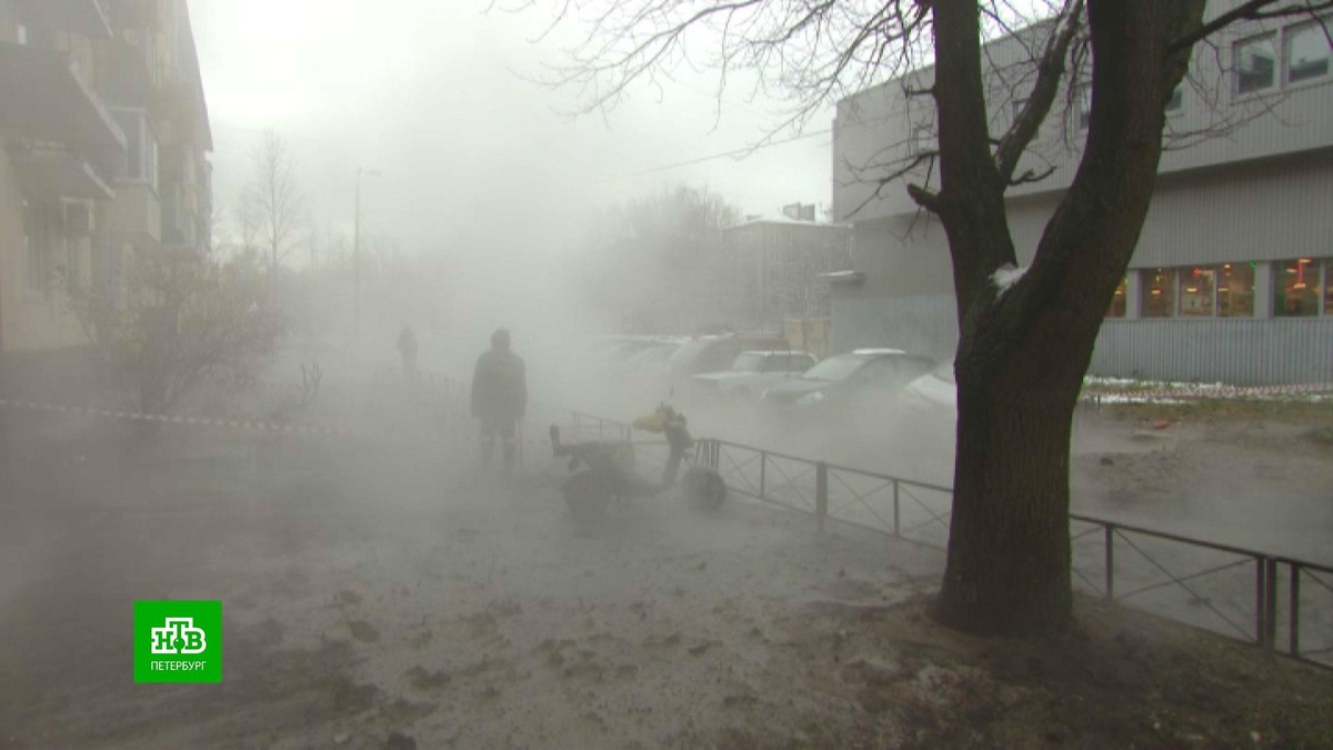 Бассейная улица Петербурга после прорыва кипятка стала похожа на баню