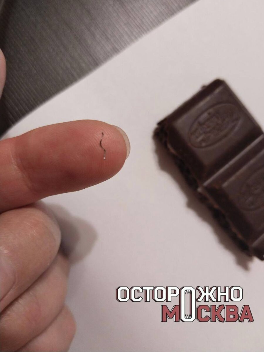 Шокирующая находка в детском лакомстве в Подмосковье Неприятный инцидент произошел в Лобне. По данным телеграм-канала «Осторожно, Москва!», мама с ребенком приобрели шоколадную плитку в фирменном магазине «Алёнка». На следующий день, когда малыш решил насладиться угощением, его ждал настоящий шок. Откусив кусочек, сладкоежка едва не подавился… металлической проволокой. К счастью, мать оказалась рядом и быстро извлекла изо рта ребенка опасный и несъедобный предмет. Женщина уже написала претензию производителю. Пока ответа она не получила. #шоколад #чп #жалоба #ребенок #магазин #новостимо #событиямо