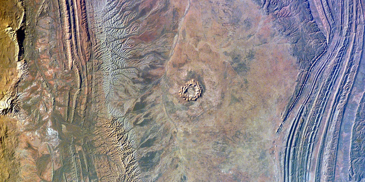 Ударная структура Вредефорт является крупнейшим подтвержденным кратером на Земле, и ее возраст составляет 2 миллиарда лет. Считается, что первоначальный кратер достигал 300 км в диаметре, но в значительной степени подвергся эрозии. Удар обнажил одни из древнейших пород на планете. Это одно из очень немногих мест, где можно увидеть полную геологическую летопись за целую треть истории Земли, с породами возрастом от 2,1 до 3,5 миллиарда лет. Когда большинство людей думают об ударном кратере, они представляют себе идеально круглую впадину, как Метеоритный кратер. Но кратеры могут иметь разную форму и внешний вид – Вредефорт имеет сложную форму и известен как многокольцевой ударный бассейн. Эти бассейны образуются при очень крупных импактах, и их также можно увидеть на других планетах. Море Восточное на Луне – один из примеров.
