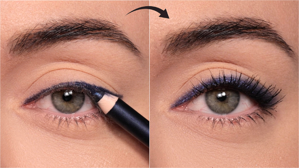 Девчонки, привет! Сегодня мы с вами будем делать смоки-стрелку в цвете индиго. Этот макияж отлично подойдёт, как и просто на каждый день, так и для новогоднего корпоратива или любого другого праздника! Не забудьте поставить видео лайк, напишите в комментариях, как вам такой макияж, и подписывайтесь на мои Telegram и Max каналы! Как обычно, веко к макияжу подготовила с помощью консилера, распределила его спонжем и закрепила пудрой. Беру синий карандаш от Пупа в пятьдесят третьем оттенке, И начиная от внутреннего уголка глаза ко внешнему, прокрашиваю им линию роста ресниц. Из уголка глаза к виску вывожу небольшую линию Теперь смотрю прямо и соединяю эту линию с глазом. Закрашиваю получившийся треугольничек. Беру детальную кисточку деко 312 и по верхней и боковой границе подтушёвываю наш карандаш. Работаю движениями вверх, вниз, вправо, влево, туда-сюда. Не вывожу пигмент сильно вверх. Сохраняю ту форму, которую мы с вами нарисовали. Просто создаю по контуру лёгкое размытие. Беру sparkl