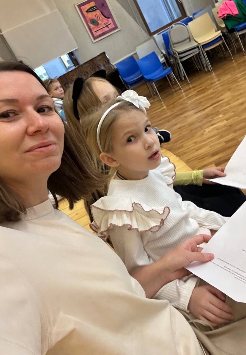 Немного из родительской жизни. Открытый урок по вокалу у дочки. Папа всегда приносит цветы, чтобы поддерживать артистку. Я как мать поддерживаю всячески: приходится и на сцену идти, и скороговорки читать - Ева самая маленькая, еще даже не школьница, а занимается с ребятами из 2-3 классов. Люблю эту часть жизни 🤍