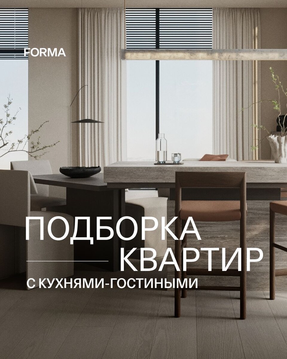 Пространство, которое собирает семью за одним столом, подходит для встреч и остаётся местом уединения — всё это про квартиры с большой кухней-гостиной. Мы собрали подборку планировок в проектах FORMA, где функциональная зона становится сердцем дома: ◽️ Квартира 480 — Pave ◽️ Квартира 214 — Pave ◽️ Квартира 522 — Portland ◽️ Квартира 129 — Moments ◽️ Квартира 749 — Moments ◽️ Квартира 753 — Soul ◽️ Квартира 109 — Soul