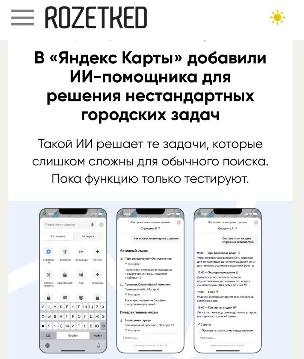 Яндекс Карты начали тестировать нового ИИ-помощника для исследований города! 🗺 Угадайте, кто у них внутри? - Свежая нейросеть Алиса AI