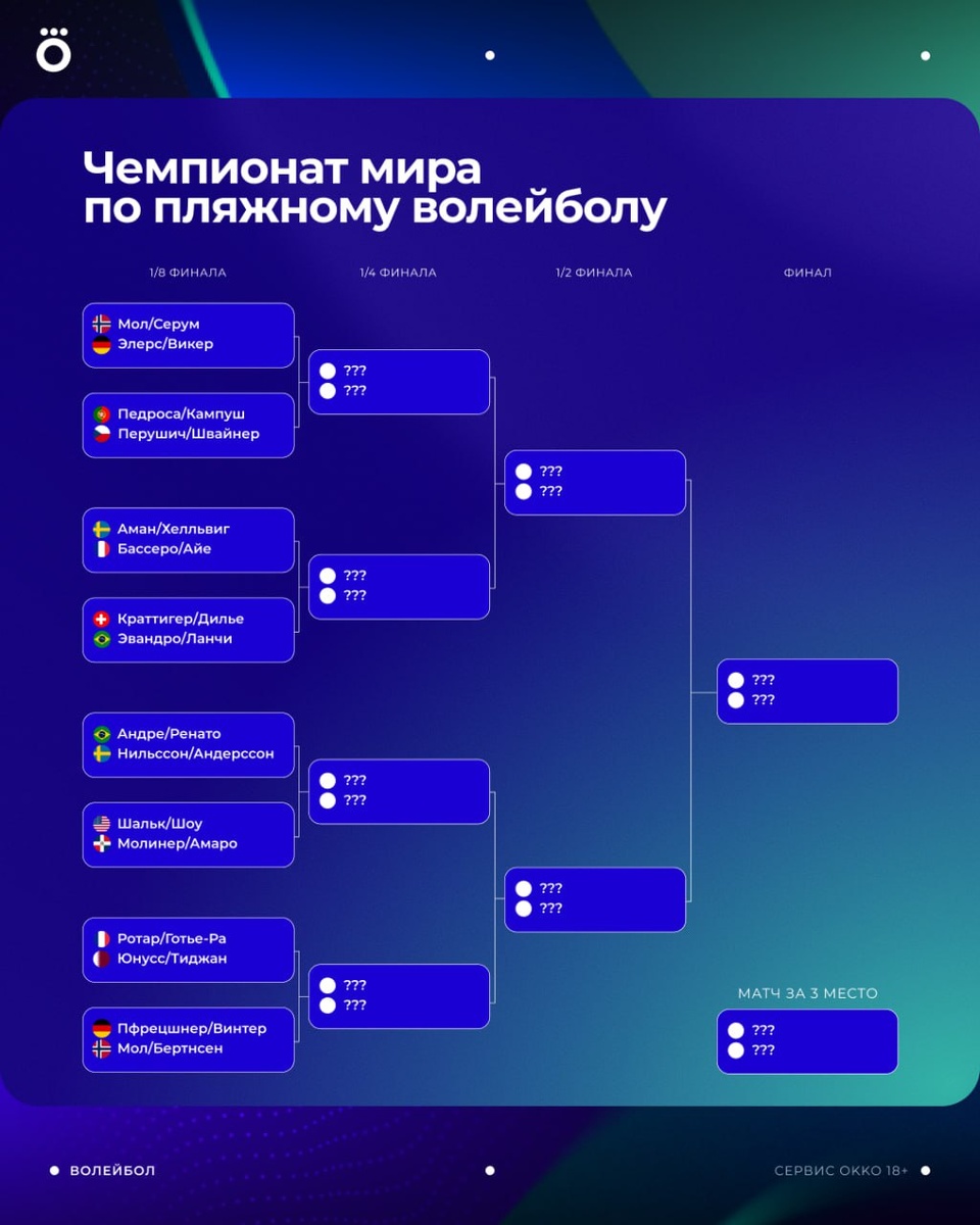 🏖 ЧМ по пляжному волейболу среди мужчин в разгаре. Сетка на месте — готовимся к 1/8 финала.