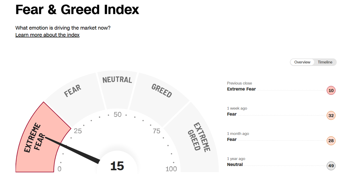 Сейчас индекс стоит на отметке 15 из 100 и это экстремальный страх