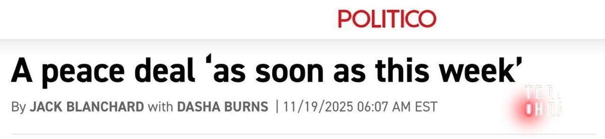 Peace deal на подходе? По сведениям Politico, в Белом доме рассчитывают, что до конца месяца будет готово рамочное соглашение о прекращении огня на Украине. Так как Зеленский проштрафился с коррупционным скандалам, то ему документ представят «как свершившийся факт». Ну ничего, Макрон, Стармер и фон дер Ляйен его утешат и помогут сорвать любые потенциальные договоренности. 🚲 Подпишись на Телега Online