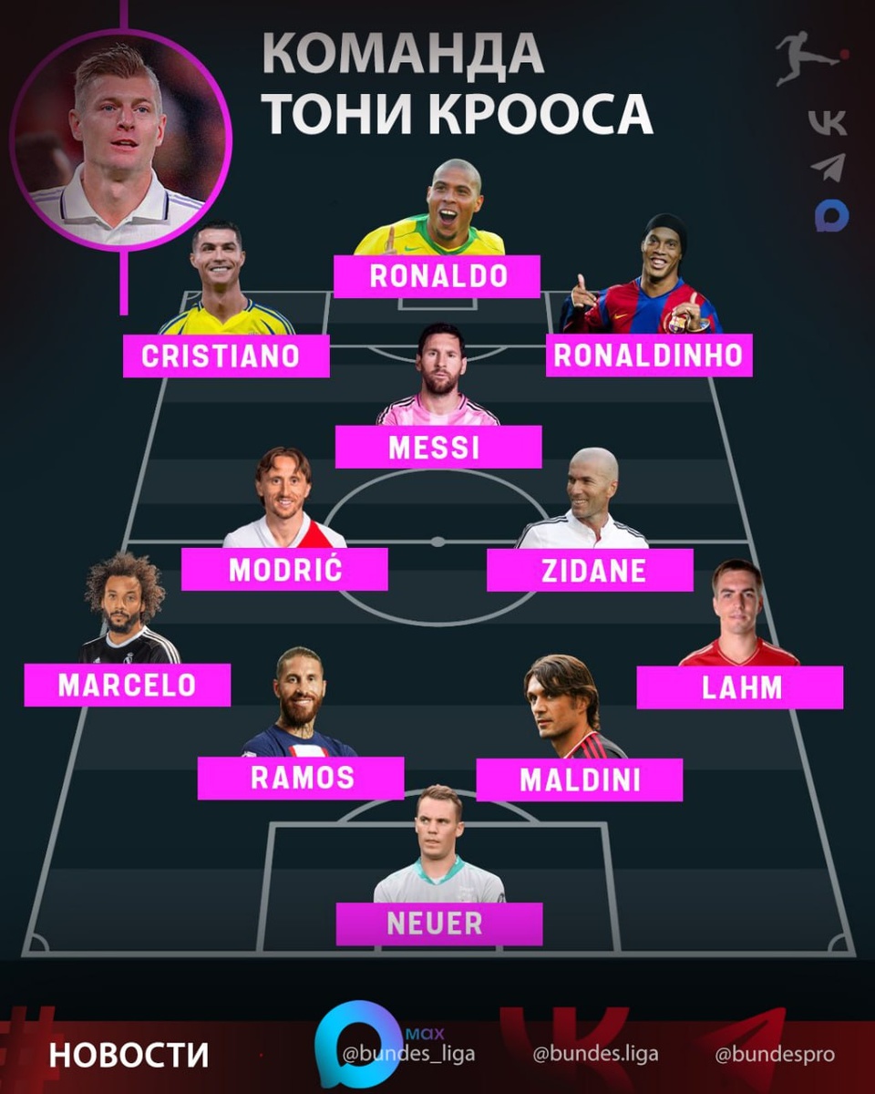 Тони Кроос назвал свою команду из 11 любимых футболистов ⚽️ ⭐️ MAX -❤ Телеграм - ✅️Вконтакте