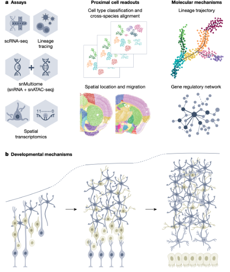В недавнем выпуске Nature опубликован обзор работ, посвященных последним достижениям и будущим перспективам в изучении развития мозга млекопитающих. На примере мозга мыши, макаки и человека показано, как изменяется мозг в процессе развития и что многие тяжелые заболевания типа аутизма, шизофрении и эпилепсии возникают не в зрелом мозге, а при сбоях на этапе его становления. Комплекс методов, которые использовались для построения атласов клеток мозга. Nowakowski, T.J. et al. / Nature2025 Понимание того, как развивается мозг человека в процессе взросления – центральный вопрос в нейронауке и имеет решающее значение для борьбы со многими нарушениями нейроразвития и психиатрическими расстройствами. Долгие десятилетия нейробиологи пытаются понять, как из крошечного скопления клеток формируется человеческий мозг – самый сложный объект во Вселенной. Международная команда ученых опубликовала обзор, в котором собраны и проанализированы данные о развитии мозга млекопитающих. Эта работа проводитс