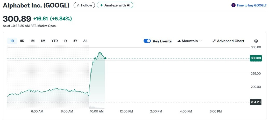 πΈ ΠΠΊΡΠΈΠΈ Google (GOOGL) Π΄ΠΎΡΡΠΈΠ³Π»ΠΈ Π½ΠΎΠ²ΠΎΠ³ΠΎ ΠΈΡΡΠΎΡΠΈΡΠ΅ΡΠΊΠΎΠ³ΠΎ ΠΌΠ°ΠΊΡΠΈΠΌΡΠΌΠ° Π² $302.