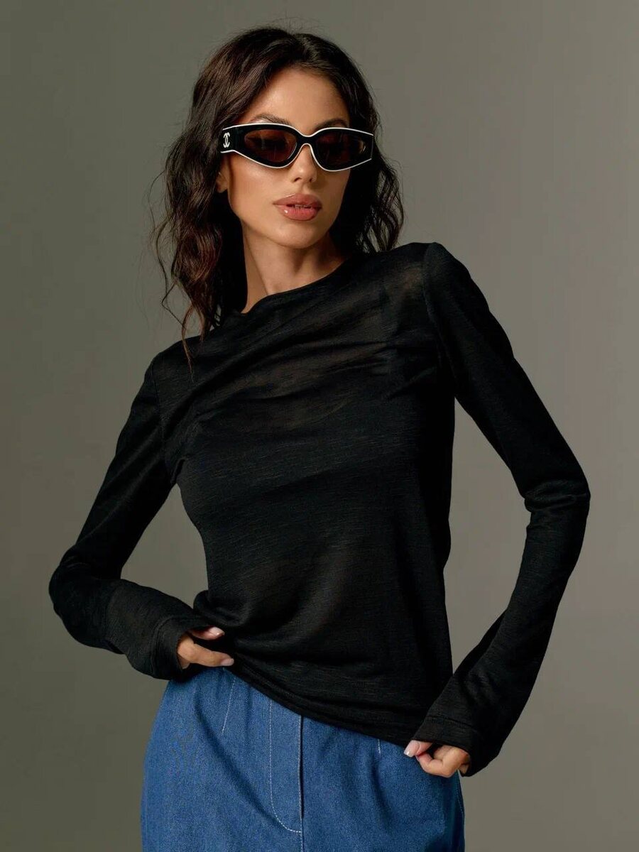 Лёгкий лонгслив из тончайшей ткани с аккуратным raw-краем — нежная основа для многослойных, продуманных образов