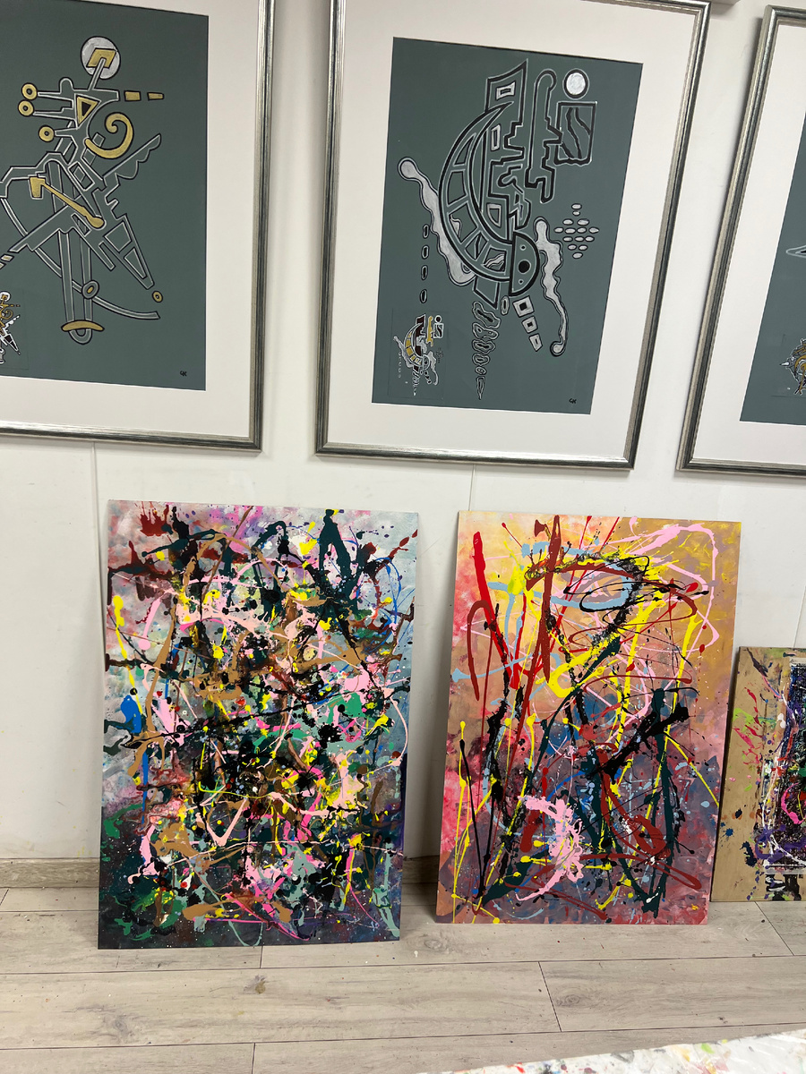 И вот, моя мечта начала сбываться! Две мои новые картины, выполненные в стиле абстрактного экспрессионизма на художественном картоне (100х70 см), с использованием акрила и лака, теперь тоже нашли свое место в этой мастерской. Это невероятная честь и гордость для меня!