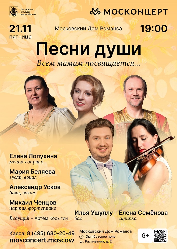 АФИША! 21 НОЯБРЯ, 19.00, ДОМ РОМАНСА, "Песни души", ВСЕМ МАМАМ ПРСВЯЩАЕТСЯ!