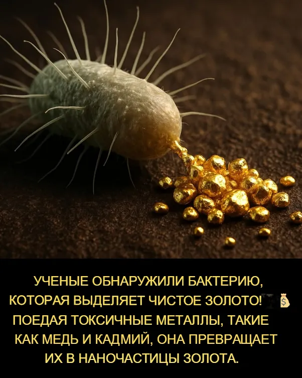 Ученые обнаружили удивительную бактерию, которая может «выделять» золото после поглощения токсичных металлов. Было установлено, что бактерия Cupriavidus metallidurans процветает в высокотоксичной среде, содержащей такие металлы, как золото, медь и кадмий. Необычность этого открытия заключается в том, что при взаимодействии с этими металлами бактерия превращает их в наночастицы золота в качестве побочного продукта. Этот процесс называется биоминерализацией: бактерия использует свои естественные метаболические процессы для расщепления токсичных металлов и преобразования их в твёрдые частицы золота. Проще говоря, бактерии «поедают» металлы, а затем «выделяют» золото. Это открытие может произвести революцию как в добыче золота, так и в очистке окружающей среды. Традиционные методы добычи золота наносят вред окружающей среде и часто предполагают использование токсичных химикатов, таких как цианид. Однако использование бактерий для извлечения золота является экологически безопасным и устой