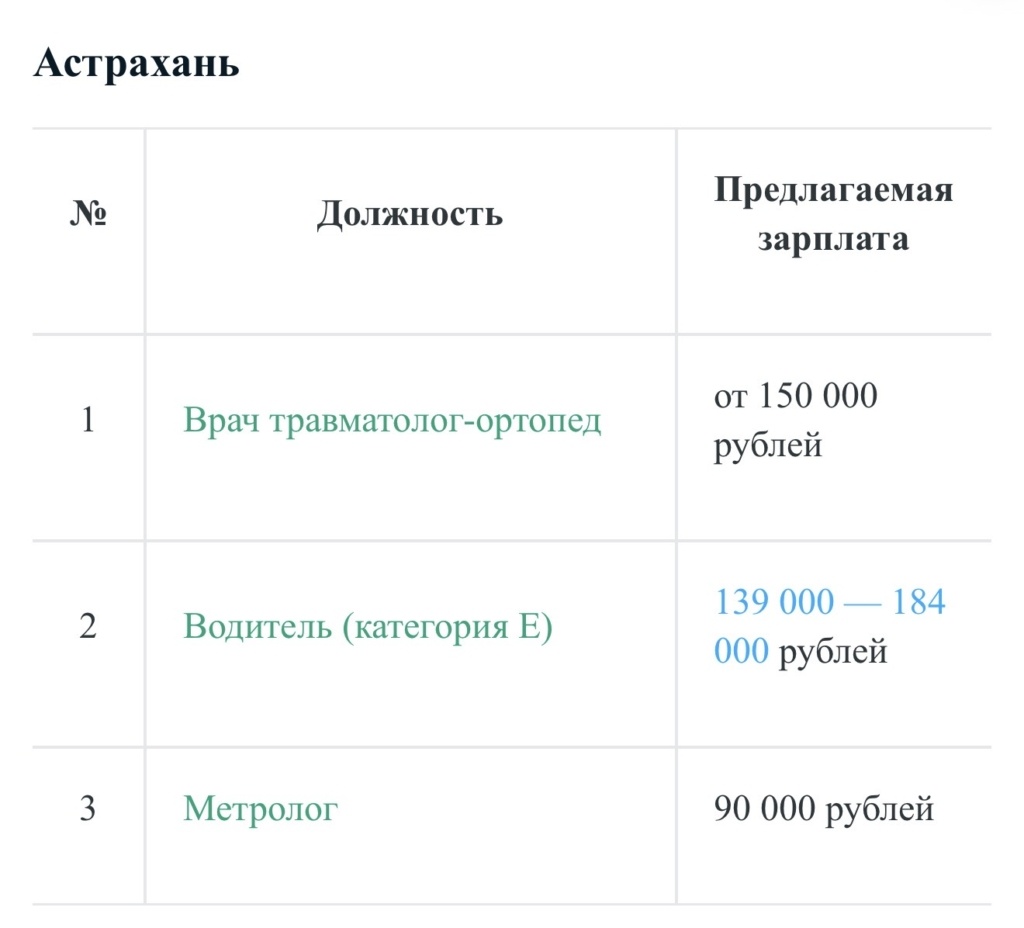 Сервис по поиску работы SuperJob проанализировали 27 тысяч вакансий в городах, численность населения которых составляет от 500 тысяч до 1 миллиона человек, и отобрали лучшие предложения ноября. В ноябре текущего года в Астрахани больше всего готовы платить врачу травматологу-ортопеду. Естественно, ищут сотрудника с высшим медицинским образованием и опытом работы от трех лет. Компания предлагает зарплату от 150 тысяч рублей, а иногородним также предоставят жилье. На втором месте оказалась вакансия водителя. Зарплата – 184 тысячи рублей. Кандидат должен иметь водительские права категории «С» и «Е». На третьем месте – метролог с зарплатой 90 тысяч рублей. В рейтинг также вошли вакансии менеджера по продажам с зарплатой от 100 тысяч рублей и экономиста планово-экономического отдела с зарплатой до 130 тысяч рублей. В Иркутске, Владивостоке и Набережных Челнах в топе зарплатных предложений ноября оказались врачи. Всему виной дефицит кадров. И, судя по всему, даже высокие зарплаты не привлека