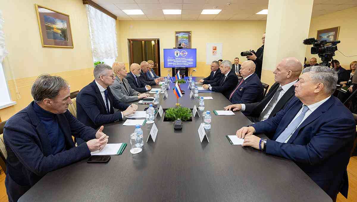 Сегодня в карельском парламенте прошла встреча с представителями Комиссии Парламентского Собрания по безопасности и обороне. В ней приняли участие председатель карельского парламента Элиссан Шандалович, вице-спикер Ольга Шмаеник и руководители профильных Комитетов. Безопасность наших границ, стабильность общества и благополучие граждан – это важнейшие цели, которые объединяют Россию и Республику Беларусь. Карелия – форпост на Северо-Западе не только для Российской Федерации, но и для Союзного государства. И мы понимаем, что на нас лежит особая ответственность», – сказал Элиссан Шандалович, открывая встречу. На территории Карелии, отметил спикер парламента, формируется армейский корпус. Его появление не только укрепит обороноспособность, но и будет иметь значение для развития инфраструктуры региона. Председатель Законодательного Собрания отметил, что Карелия и Республика Беларусь активно взаимодействуют по разным направлениям, в том числе на парламентском уровне. Так, между парламентом
