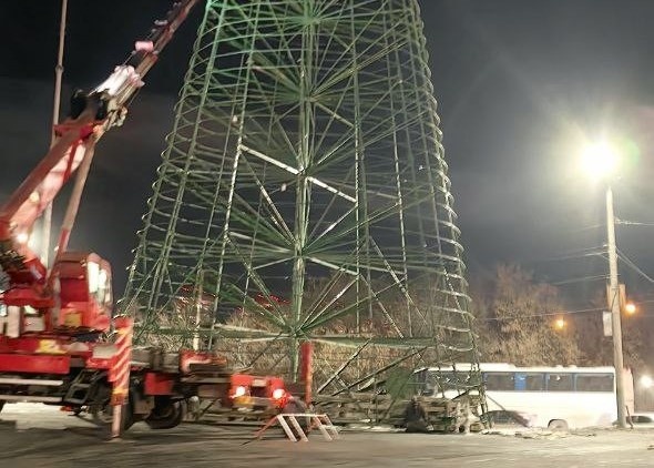 В Криволучье начали устанавливать старую новогоднюю ёлку с площади Ленина