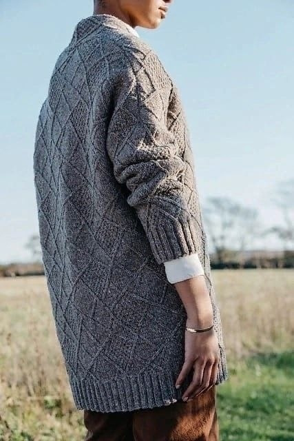 Всем привет, друзья. Сегодня в копилку нашего канала - описание вязания пальто-кардигана. Дизайнер: Norag Gaughan Простой силуэт этого кардигана становится канвой для текстур и линий из перекрещенных петель. Удобное и простое в носке изделие и лёгкое для вязания. Размеры: Для обхвата груди [76 (86.5, 96.5, 106.5, 117) (127, 137, 147.5, 157.5) см). Примечание к описанию: Спинка и полочки пальто вяжутся снизу вверх отдельными деталями и затем соединяются по плечевым швам. На отложенных петлях полочки продолжает планка горловины до середины горловины спинки, где оба конца соединяются методом 3-х спиц, и затем сшитый край планки пришивается к горловине спинки. Рукава поднимаются по пройме и вяжутся поворотными рядами и манжетом. Если во время формирования плеч петель не хватает, чтобы выполнить скрещивание по схеме, провязывать лицевой гладью. Описание подробное, надеюсь, вам пригодится. Мой Телеграмм канал с проектами совместного вязания
