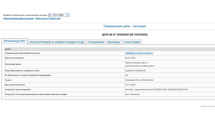 Бывшие владельцы компании «Макфа» проиграли в Седьмом кассационном суде общей юрисдикции спор о взыскании в пользу государства 19,7 млрд рублей, передает корреспондент Агентства новостей «Доступ». Сегодня, 19 ноября, их жалобы оставлены без удовлетворения, а решения нижестоящих судов – без изменения, следует из информации в карточке дела. Решение принял 23 января Центральный райсуд Челябинска. Тогда было удовлетворено заявление Генеральной прокуратуры РФ о взыскании с экс-владельцев «Макфы» дивидендов и прибыли, полученных в 2002-2024 годах. В конце октября суд по заявлению надзорного ведомства изменил способ взыскания по этому иску и обратил в доход государства 63 квартиры ответчиков. Как сообщалось, в ноябре 2024 года Генпрокуратура РФ подала иск к экс-губернатору Челябинской области Михаилу Юревичу (бывший основной собственник «Макфы») и экс-депутату Госдумы Вадиму Белоусову (участвовал в управлении «Макфой»), членам их семей, связанным с ними лицам, о взыскании 18,171 млрд рублей,