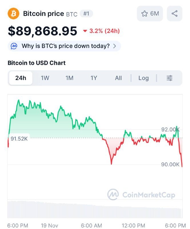 ⚡️Биткоин снова пробил дно — цена ушла ниже 90 000 долларов, и падение пока даже не думает тормозить